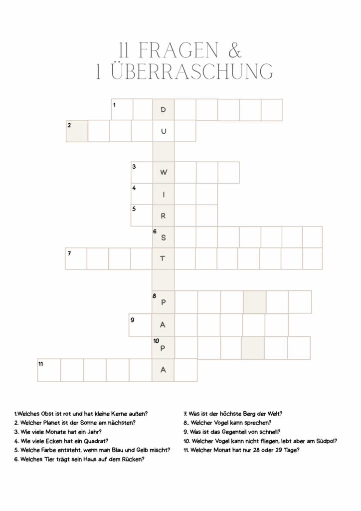 In meinem Etsy-Shop findest du kreative Rätsel und liebevoll gestaltete Vorlagen, mit denen du deine Schwangerschaft auf eine besondere Art und Weise verkünden kannst.